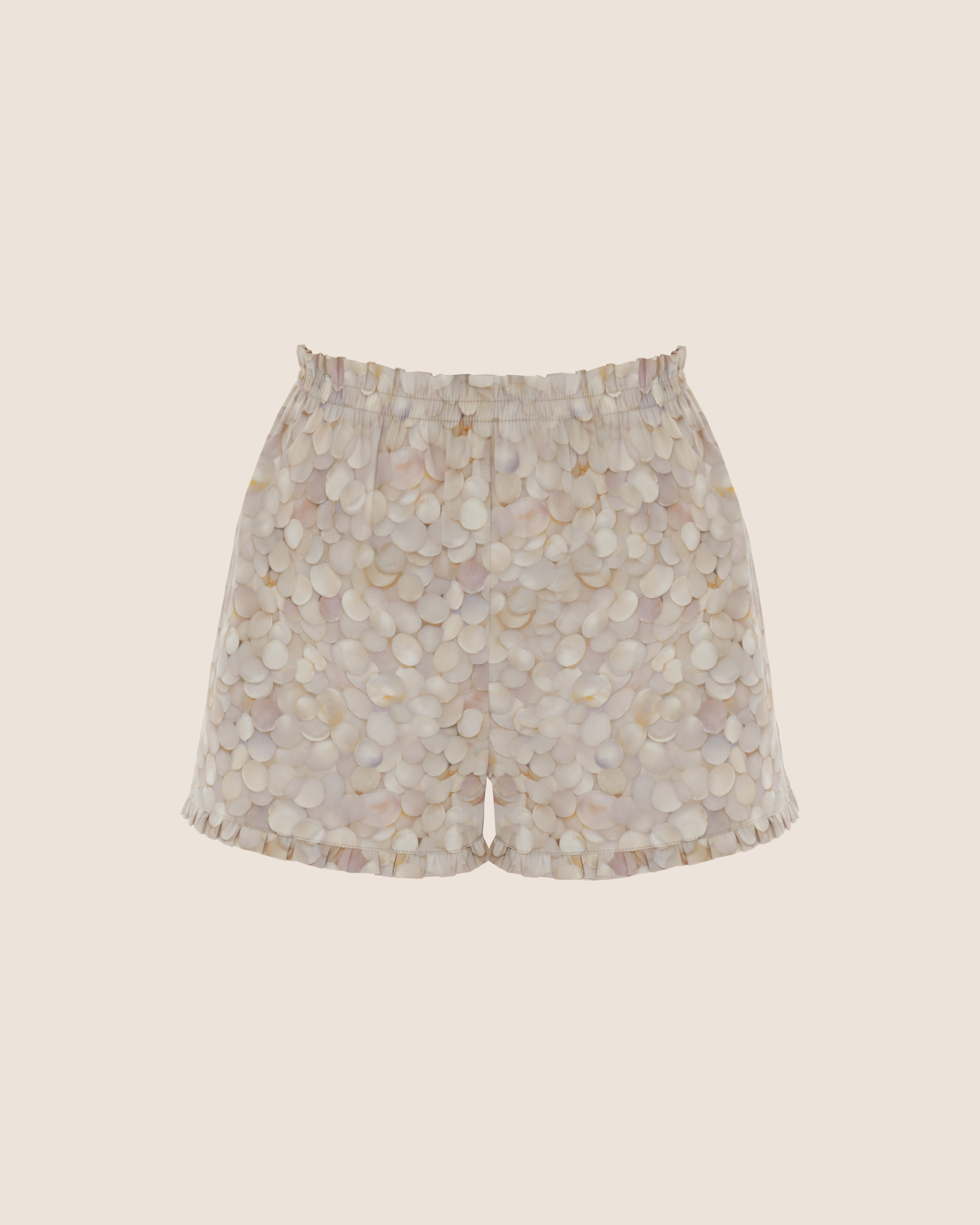 Шорты с оборками "Ундина". Выполнены из хлопка с принтом в перламутровых ракушек. Мягкая резинка делает их очень комфортными, а оборки по низу создают романтичный образ.